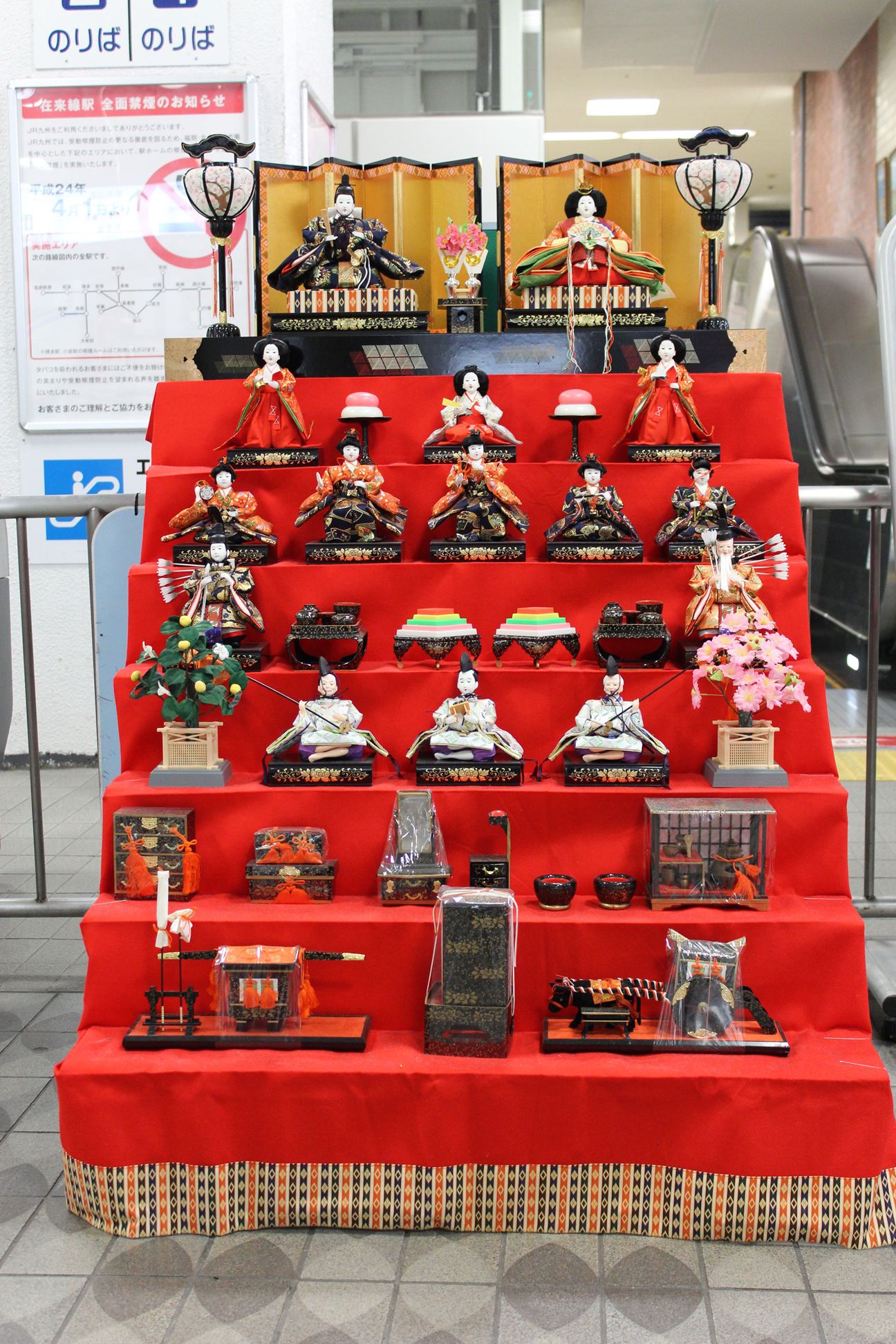 時期が時期だったので雛壇が飾ってある駅がありました。時間もあったので駅を出て撮影
