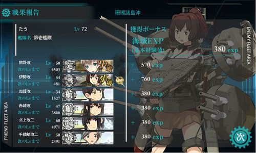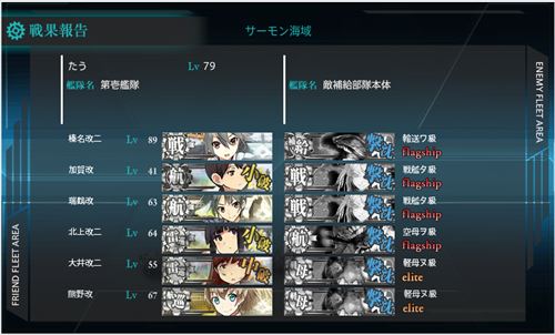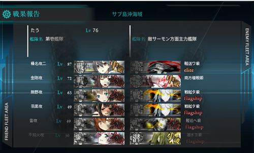 ここの攻略で使った雷と不知火は3-2のキス島攻略の際に一緒に戦ったメンバーたちよりも頭一つ高いレベルになりましたね。