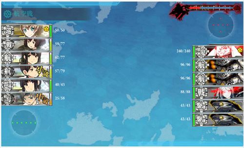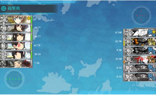 そして,このマップではルート固定要因で駆逐艦が2人必要なのと,空母を編成に入れるとルートを逸れるということから,