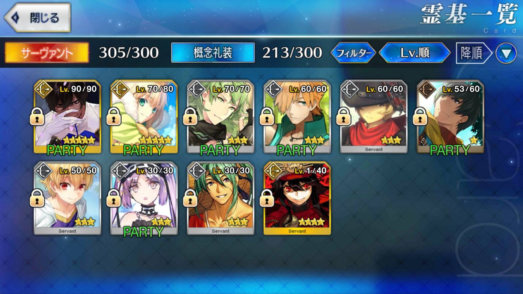 レベル最大が星5のアルジュナと星3のダビデだけですね。
